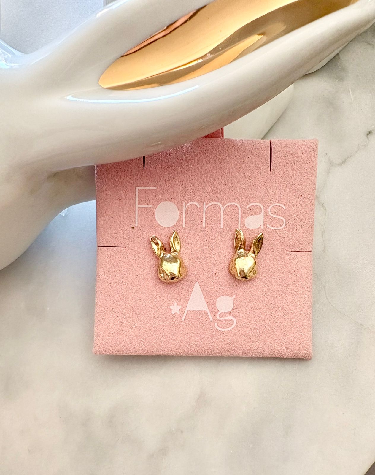 Aros bañados en oro con forma de cara de conejo de 1 cm.